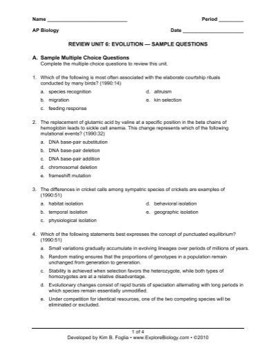 Download review unit 6 evolution sample questions answers Doc