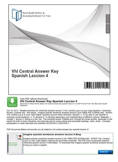 Download Vhlcentral Answer Key Spanish 1 Epub online is a convenient and frugal way to read Vhlcentral Answer Key Spanish 1 you love right from the comfort of your own home. Yes, there sites where you can get Epub "for free" but the ones listed below are clean from viruses and completely legal to use.